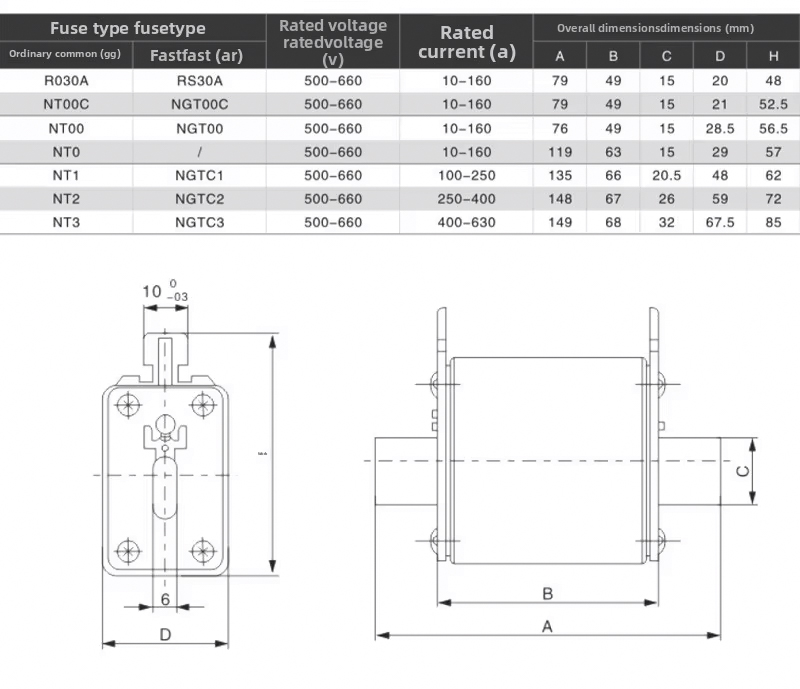 NT/NH سیریز کے مربع سیرامک فیوز عام طور پر صنعتی برقی آلات، پاور سسٹمز اور الیکٹرانک آلات میں سرکٹس کو اوورلوڈز اور شارٹ سرکٹ سے بچانے کے لیے استعمال ہوتے ہیں۔
