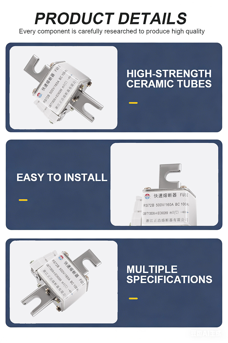 RS72B 500V 160A BC 100KA Fuse Links ایک اعلیٰ کارکردگی والا صنعتی فیوز ہے جو خاص طور پر ہائی وولٹیج اور ہائی کرنٹ کے تحفظ کے لیے ڈیزائن کیا گیا ہے۔ RS72B 500V 160A BC 100KA Fuse Links اعلیٰ معیار کے مواد سے بنا ہے اور بہترین توڑنے کی صلاحیت رکھتا ہے۔ یہ 100KA کے زیادہ سے زیادہ شارٹ سرکٹ کرنٹ کو برداشت کر سکتا ہے، مؤثر طریقے سے سامان کو پہنچنے والے نقصان کو روکتا ہے۔