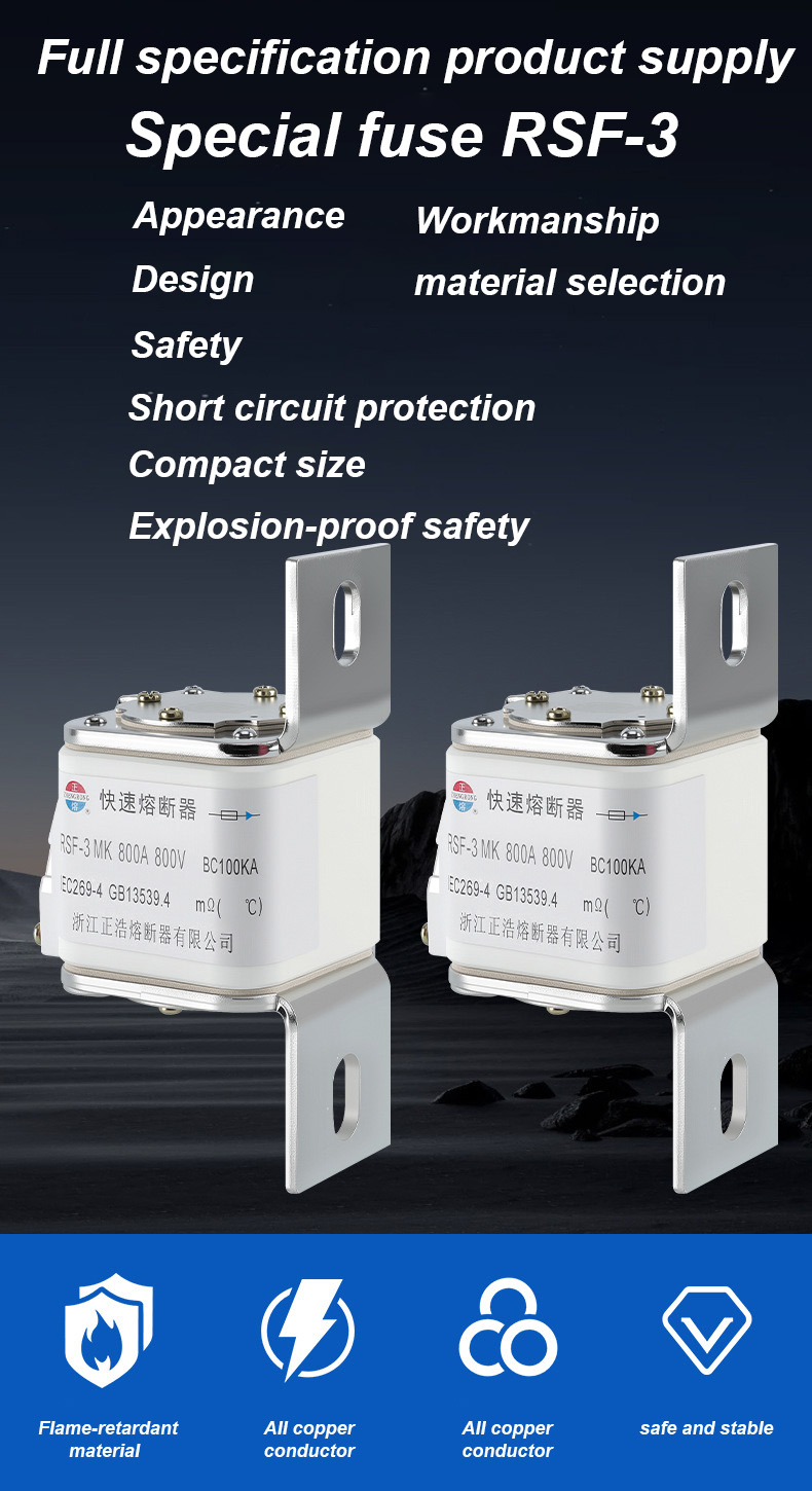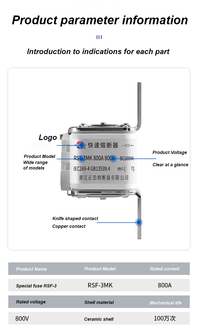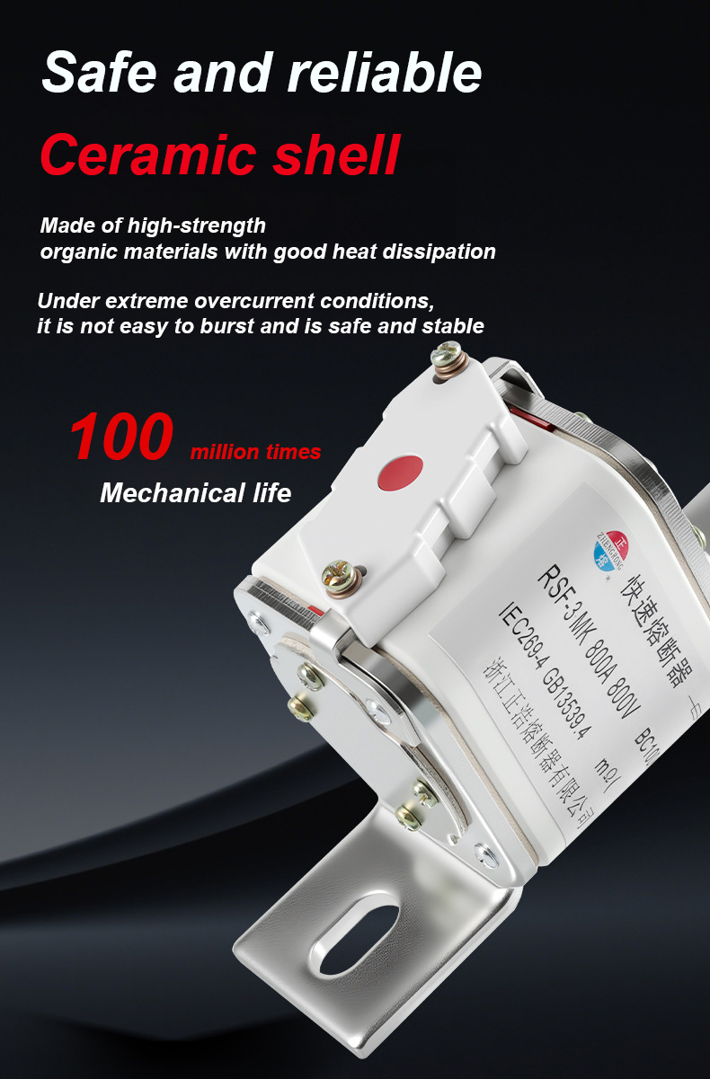 RSF-3MK 800V-800A BC100KA Fuse Links ایک اعلیٰ کارکردگی والا صنعتی سرکٹ بریکر ہے جو ہائی پاور برقی تحفظ کے منظرناموں کے لیے موزوں ہے۔ RSF-3MK 800V-800A BC100KA فیوز لنکس