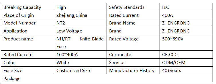 ZHENGRONG NT2 315A 500V فیوز مربع سیرامک فیوز عام طور پر صنعتی برقی آلات، پاور سسٹمز اور الیکٹرانک آلات میں سرکٹس کو زیادہ بوجھ اور شارٹ سرکٹ سے بچانے کے لیے استعمال ہوتے ہیں۔