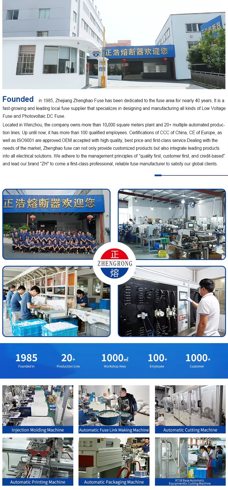 فوٹو وولٹک نظام میں ZHPV-125 1000V DC فیوز بیس اور فیوز لنک 22 × 58 ملی میٹر بیلناکار سیرامک فیوز نیچے کی ساختی خصوصیات مندرجہ ذیل ہیں۔ فیوز کا یہ سلسلہ فیوز لنک اور فیوز ہولڈر پر مشتمل ہے۔ خالص تانبے کی چادر (یا تانبے کے تار ، چاندی کے تار ، چاندی کی چادر) سے بنی متغیر کراس سیکشن فیوز باڈی اعلی طاقت والے سیرامک یا ایپوسی شیشے کے کپڑے ٹیوب سے بنی ایک فیوز ٹیوب میں مہر لگا دی گئی ہے ، جس میں کیمیائی طور پر علاج شدہ اعلی طہارت کوارٹج ریت سے بھرا ہوا ایک آرک بجھانے والا میڈیم ہے۔ فیوز کور کے دونوں اطراف اسپاٹ ویلڈنگ کے ذریعے معتبر طور پر اختتامی پلیٹ سے جڑے ہوئے ہیں ، جس سے بیلناکار کیپ کے سائز کا ڈھانچہ تشکیل دیا جاتا ہے۔ ZHPV-125 1000V DC فیوز بیس رال یا پلاسٹک کے شیل سے بنی ہے جس میں بجلی کے جھٹکے سے دبایا جاتا ہے ، جس میں فیوز عنصر بھی شامل ہے ، جو مناسب سائز کے فیوز باڈی جزو کی حمایت کے طور پر ریویٹنگ کے ذریعہ جڑا ہوا ہے۔ فیوز کے اس سلسلے میں چھوٹی حجم ، آسان تنصیب ، محفوظ استعمال اور خوبصورت ظاہری شکل کے فوائد ہیں۔